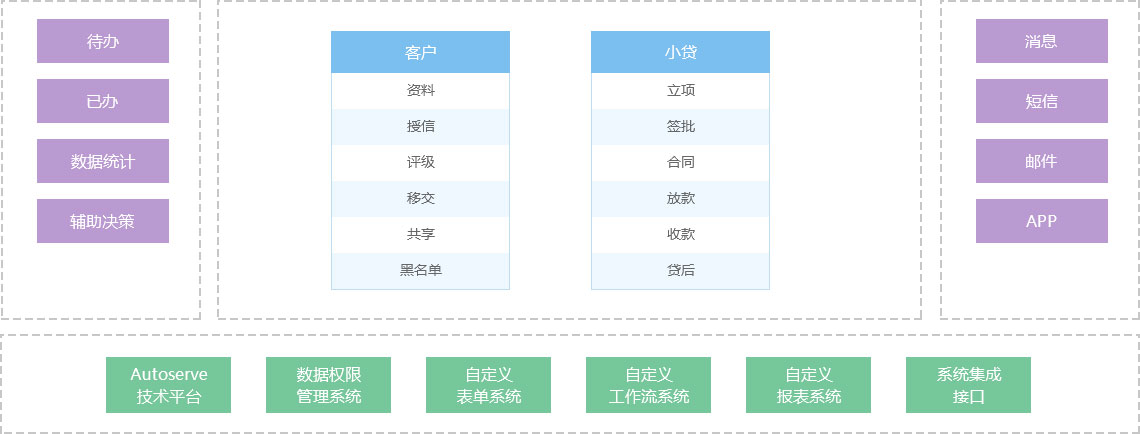 審貸分離,剛性控制,多種客戶管理模式;貸前審查功能齊全