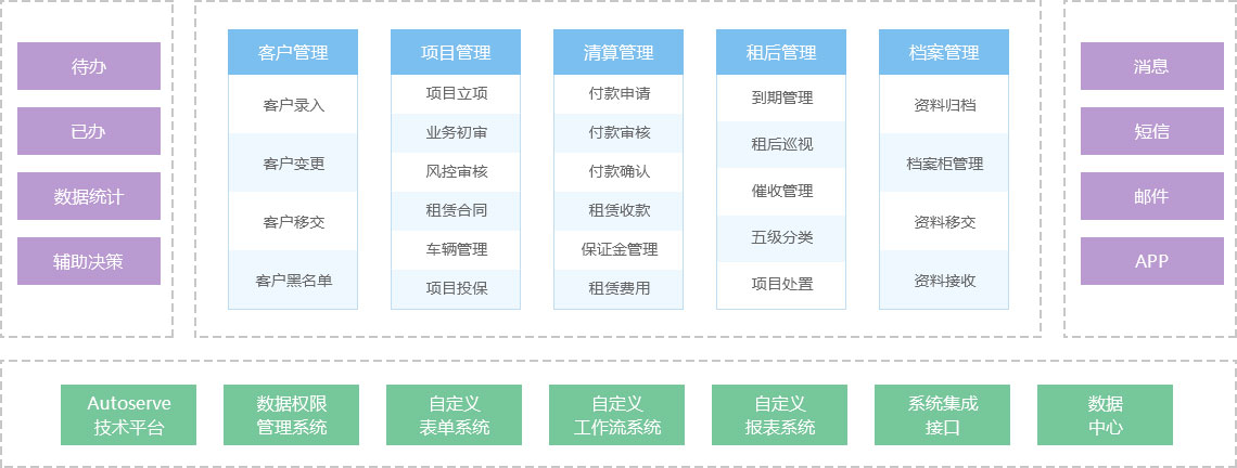 奧拓思維汽車融資租賃業(yè)務(wù)管理系統(tǒng)是專業(yè)的汽車融資租賃業(yè)務(wù)管理軟件,集客戶管理、信用評級、立項(xiàng)管理、車輛管理、信審管理、合同管理、清算管理、租后監(jiān)管、催收管理、統(tǒng)計(jì)分析、移動辦公、大數(shù)據(jù)風(fēng)控等一系列功能于一體的汽車融資租賃信息化解決方案。系統(tǒng)能夠幫助企業(yè)高效的管理二手汽車抵押融資、新車首付融資等等,滿足企業(yè)不同的汽車融資業(yè)務(wù)要求。